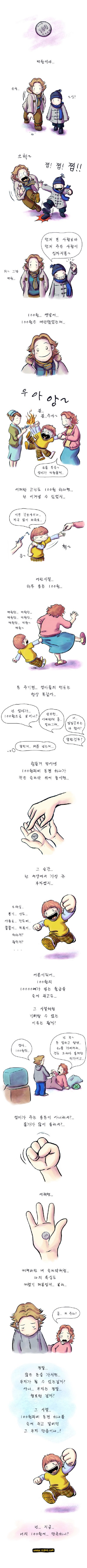 하긴 100원도 돈이다. 한십만년 동안 돈모으기하면 돈이 돼지...