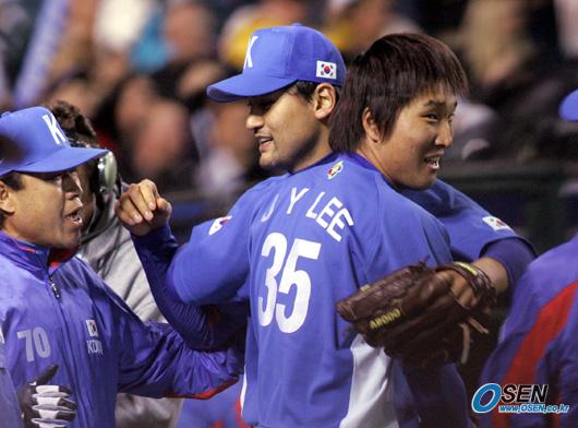 한국은 박찬호에 이어 전병두(⅔이닝)-김병현(1⅔이닝)-구대성(1이닝)-오승환(⅔이닝)이 이어던져 이 대회 팀타율 1위인 일본을 단 1실점으로 막아냈다. 오승환은 2-1로 쫓긴 9회말 1사 1루에서 마운드에 올라 대타 아라이를 삼진, 다무라를 삼진으로 잡아내고 팀의 승리를 지켜냈다.