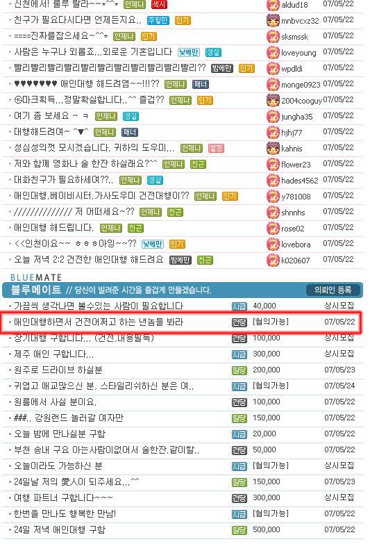 남자들이 애인대행 해 주겠다고 광고 올린 사람중 나보다 동생뻘 되는 20대만 1585명