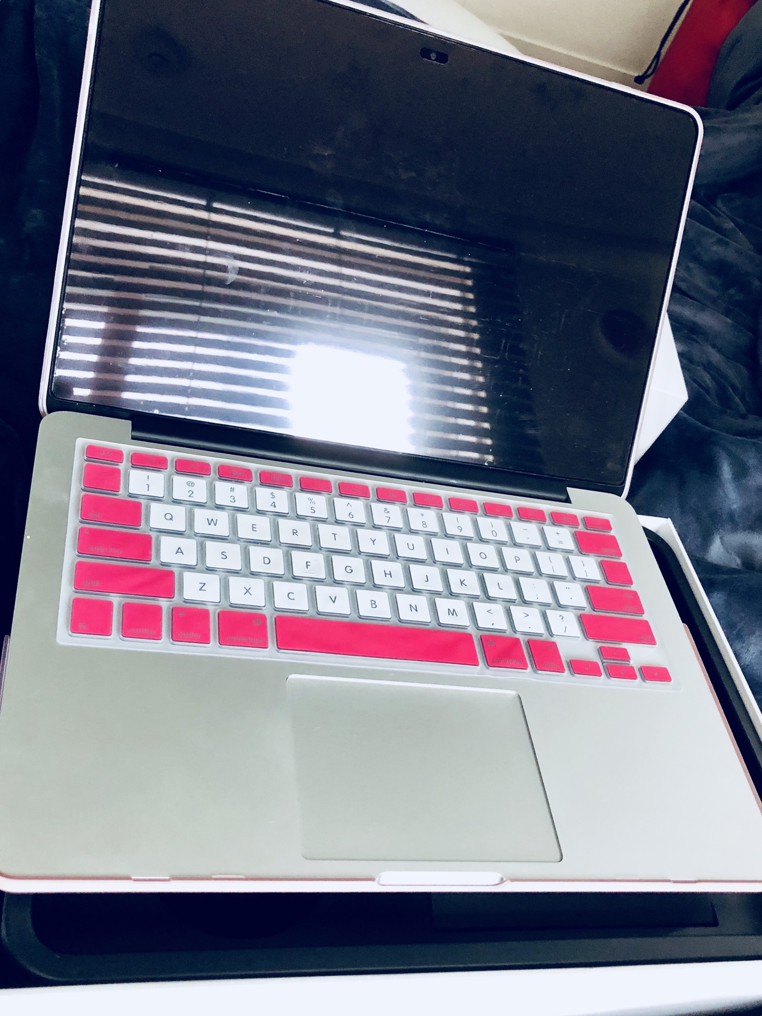 스크린필름, 키보드 스킨과 플라스틱 케이스를 끼워서 A급 상태입니다. 배터리 상태도 매우 양호하고 클럭수는 겨우 13입니다.