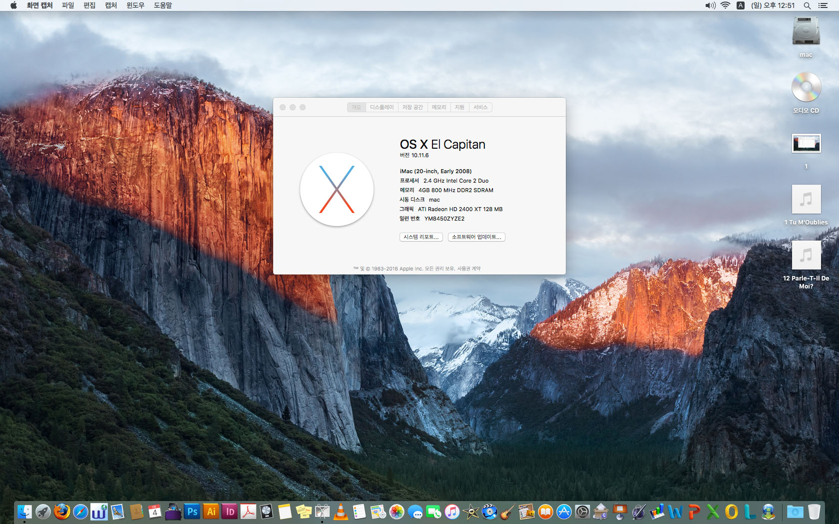 맥os 엘캐피탄과 프로그램까지 다 설치되어있는 상태최상인 아이맥입니다