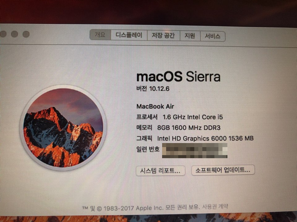 현재 설치된 OS는 시에라이고, 포맷완료하였습니다.