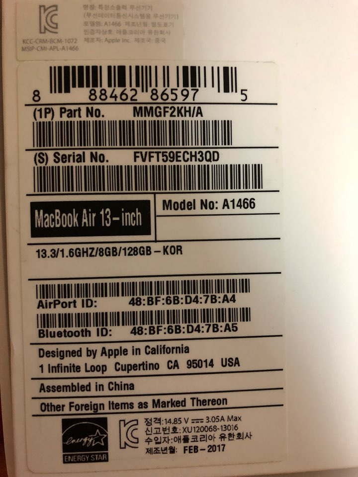 구입시기는 2017.02월이며 풀패키지 이고, 2016년형 13인치 모델입니다.