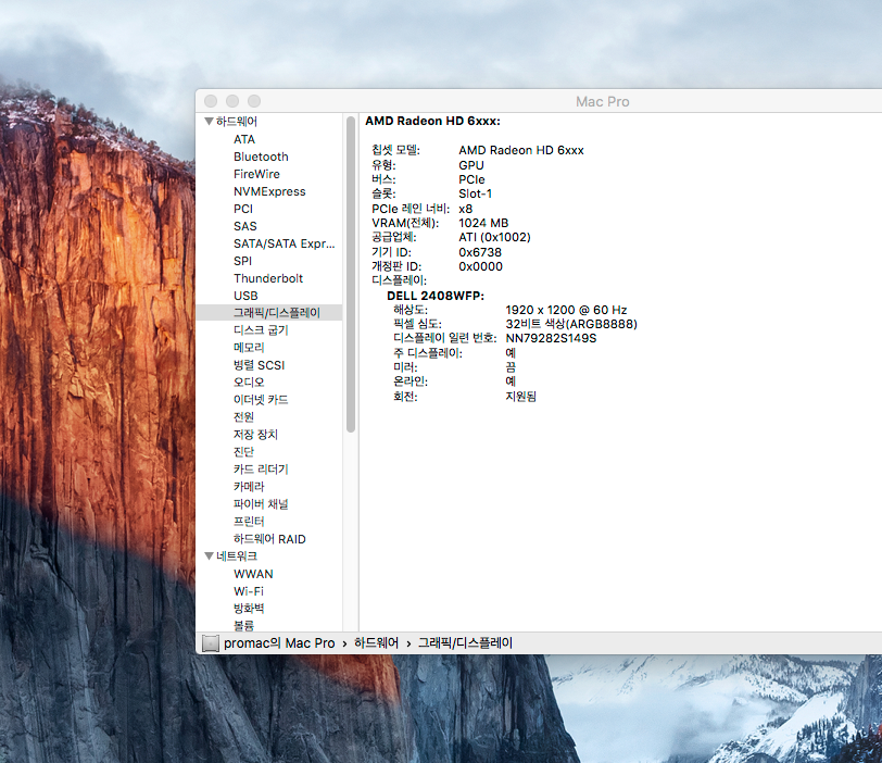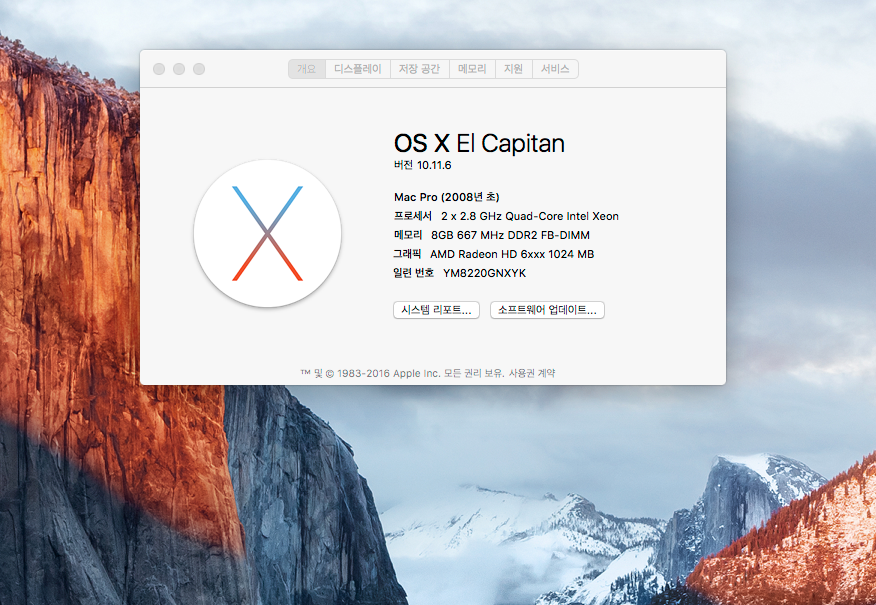모델 식별자: MacPro3,1 (MacPro3,1은 Mac OS 10.5.1부터 Mac OS 10.11 엘캐피탄까지 설치가능합니다.)