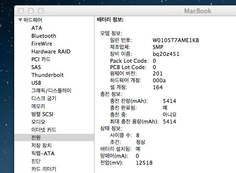 배터리 상태는 사이클이 8입니다 새거나 다름없이 배터리상태는 최상입니다