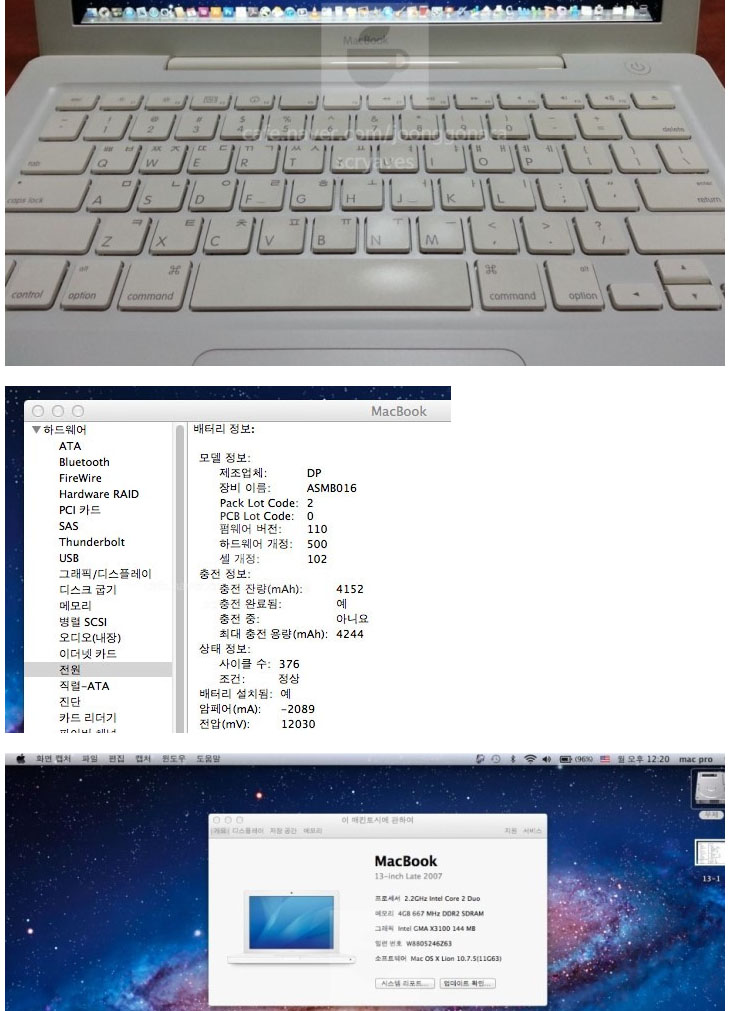 사진보시면 화이트 맥북13인치이며(사진들은 실물사진입니다)
