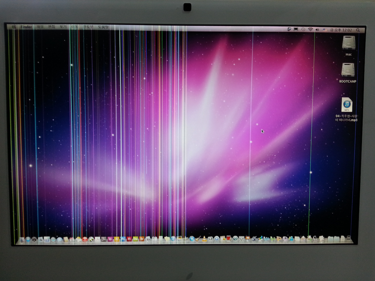 사진처럼 수직으로 가는 선이 많이 생긴 아이맥입니다
