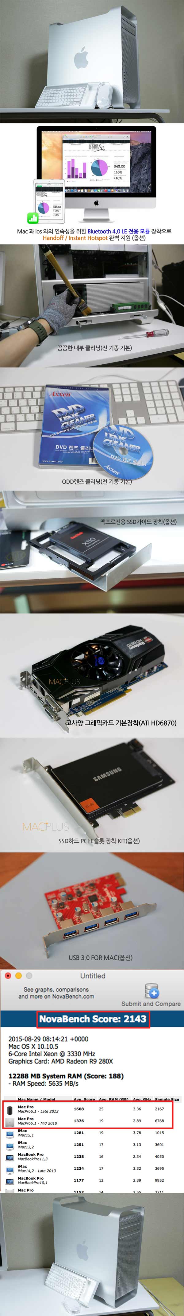 -HDD : SSD 240GB + 맥프로전용 PCI-E 장착킷(속도 150MB/s 이상 상승)