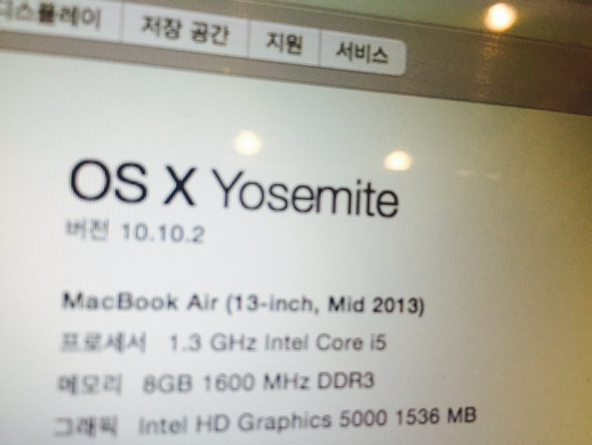 1.3ghz intel core i5 . 구성품 박스 모두 있고 잔기스 눈에 보이는거 없구 한국에서 구매하고 미국에서 일년동안 집에만 있던 에어. 입니다