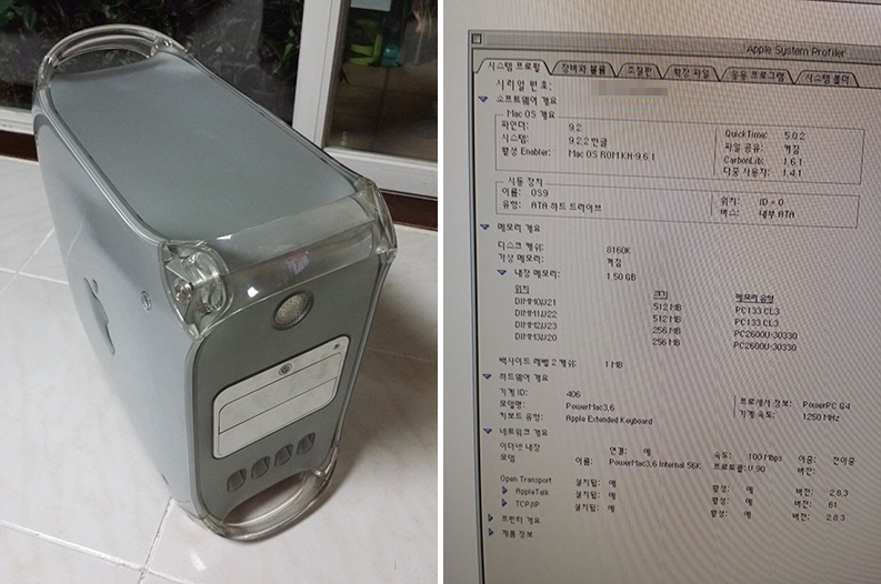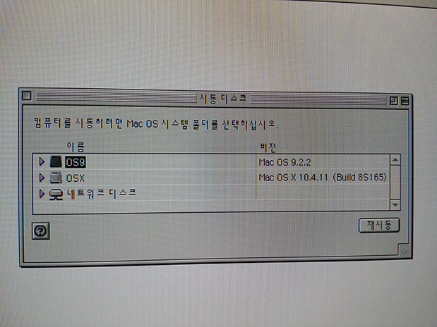 OS 9.2.2(하드80GB) 단독부팅에 OS X 10.4.11(하드40GB) 설치되어 있어 멀티부팅이 가능합니다.
