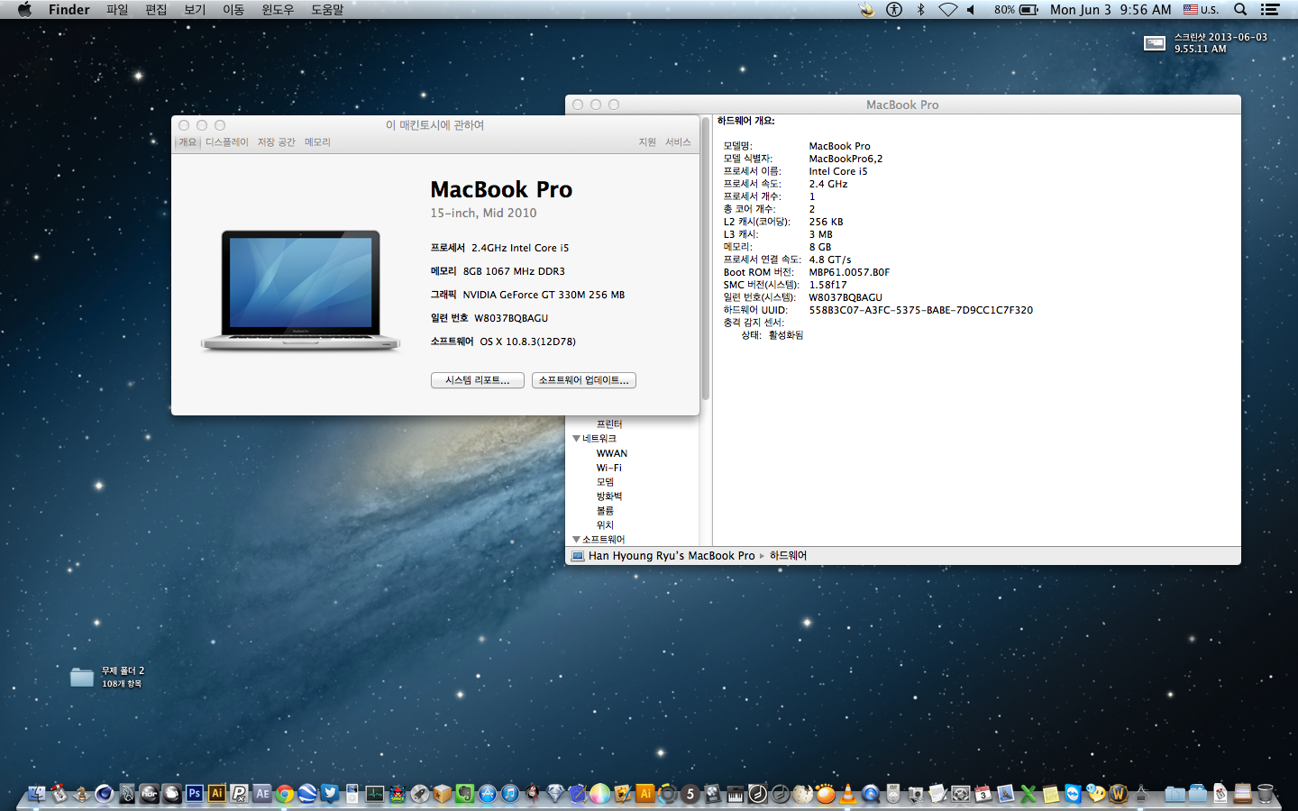맥북프로 모델 중 대부분이 2년 이상 사용하게 되면 쿨링팬에 문제가 생기기 때문에 이상여부를 확인하기 위해 팬소음 등 체크했고 이상무구요.
