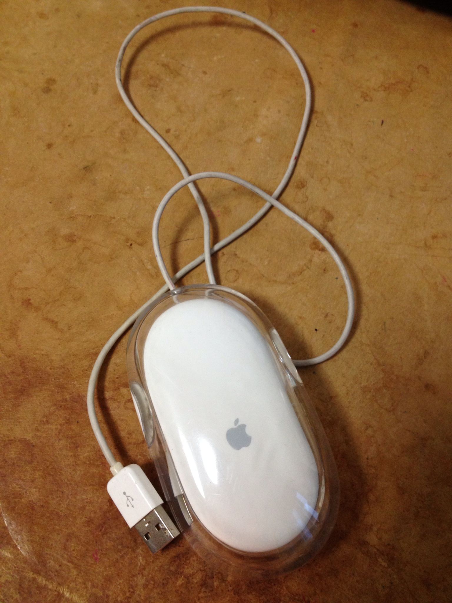 애플 광마우스입니다. 모델 넘버 M5769입니다. 사용하던 거라 줄 부분에 때가 좀 탔습니다. 닦으면 됩니다. 택포 포함입니다.