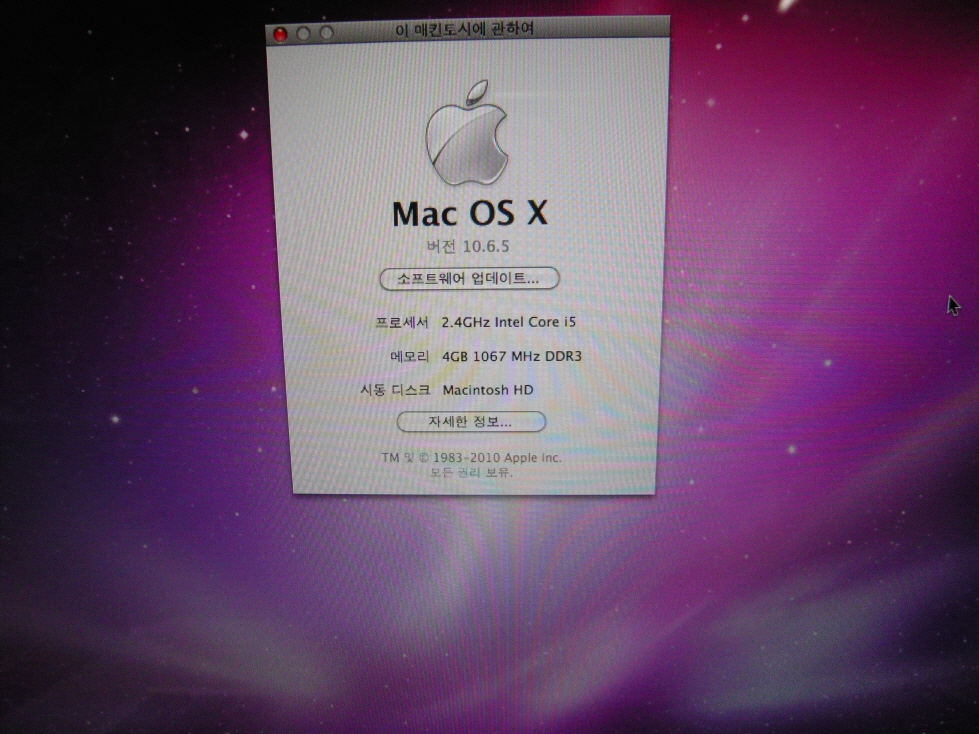 spec i5 2.4g 램4g GT330M MACPRO