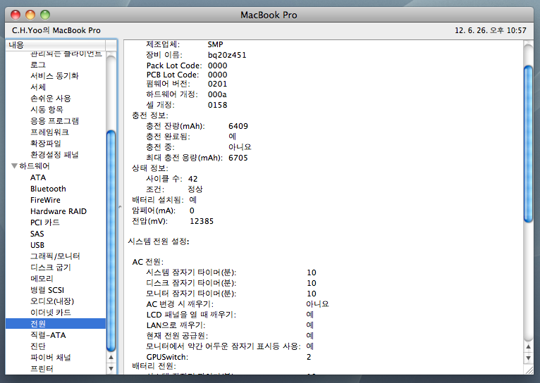 2. 사이클수 42 , 충전잔량 6705