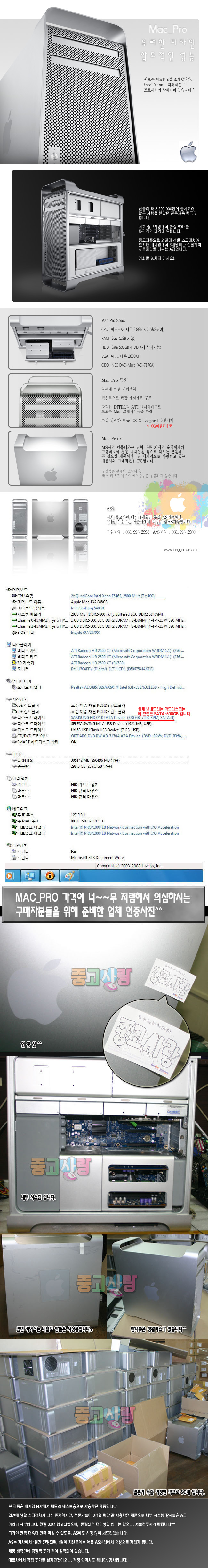 애플 맥프로 A1186 EMC 쿼드코어 제온2.8GX2(8코어) DDR2-2GB HDD-500G DVD-Multi