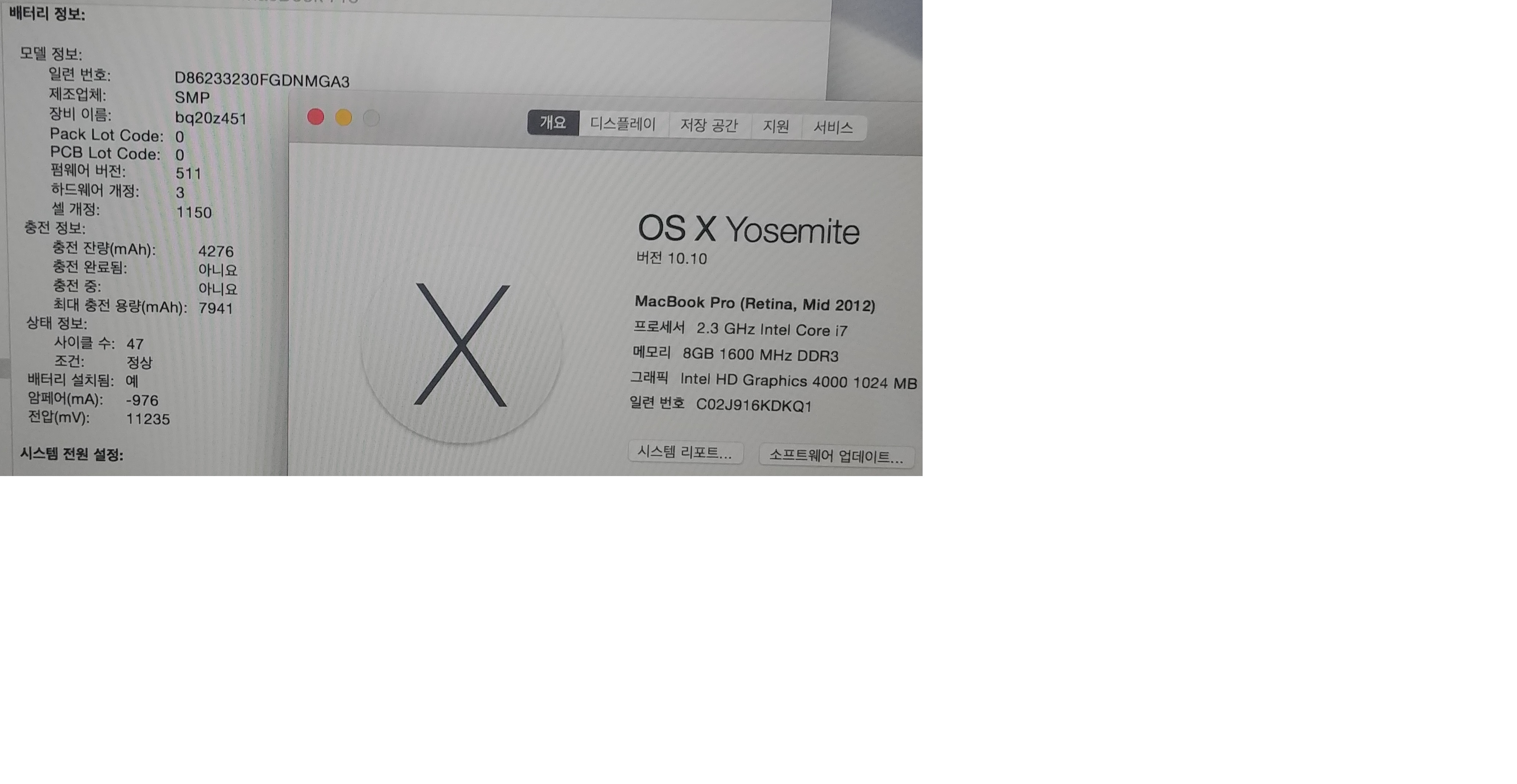 배터리 사이클 47  최대충전용량 7900