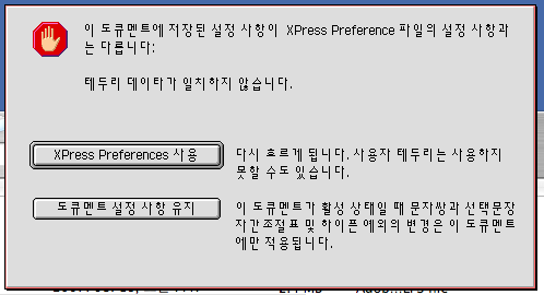 창 하단에 XPress Preferences 사용 / 도큐멘트 설정 사항 유지