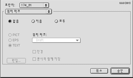 워터마크는 누가 이미지 도용이나 디자인도용을 막기 위해서 출력거나 PS파일 생성시에 특정그림등을 새겨 넣어서 도용을 막기위한 옵션입니다.