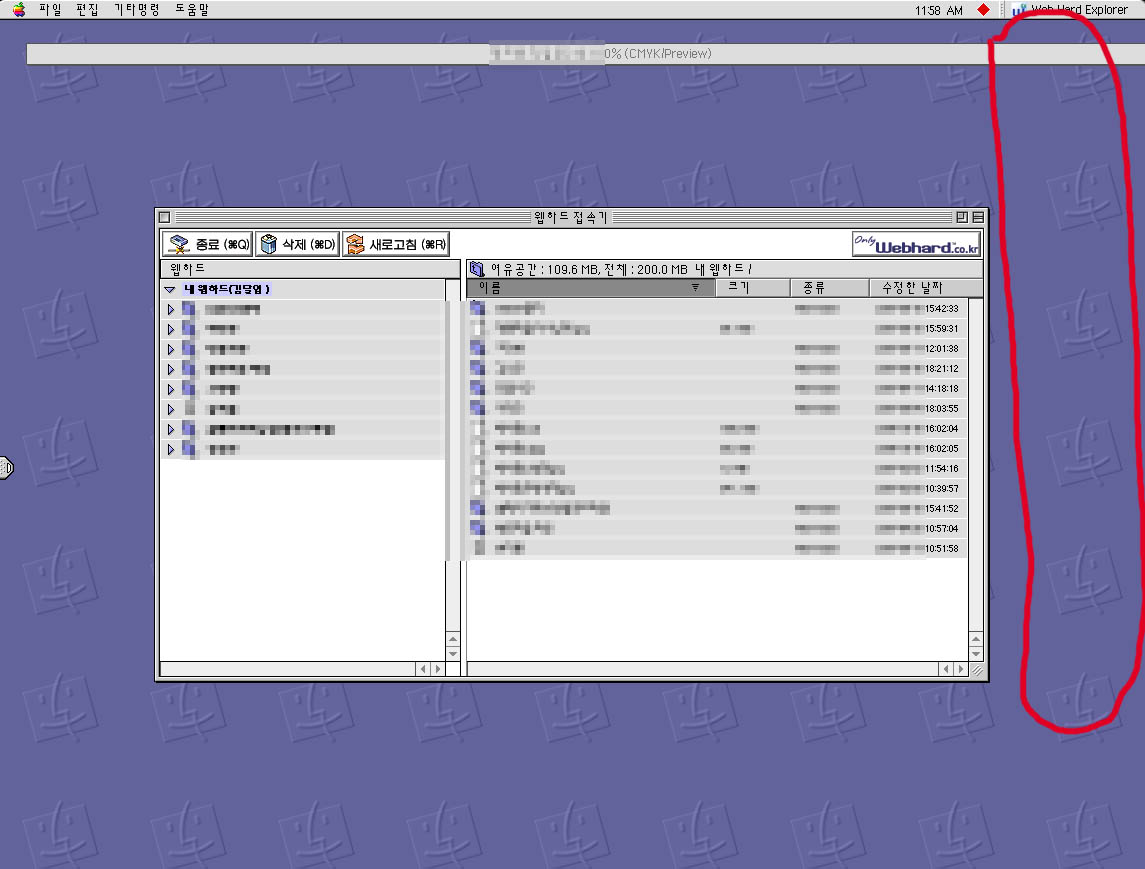 첨부파일 보면요, 웹하드 접속기를 실행시킨건데,