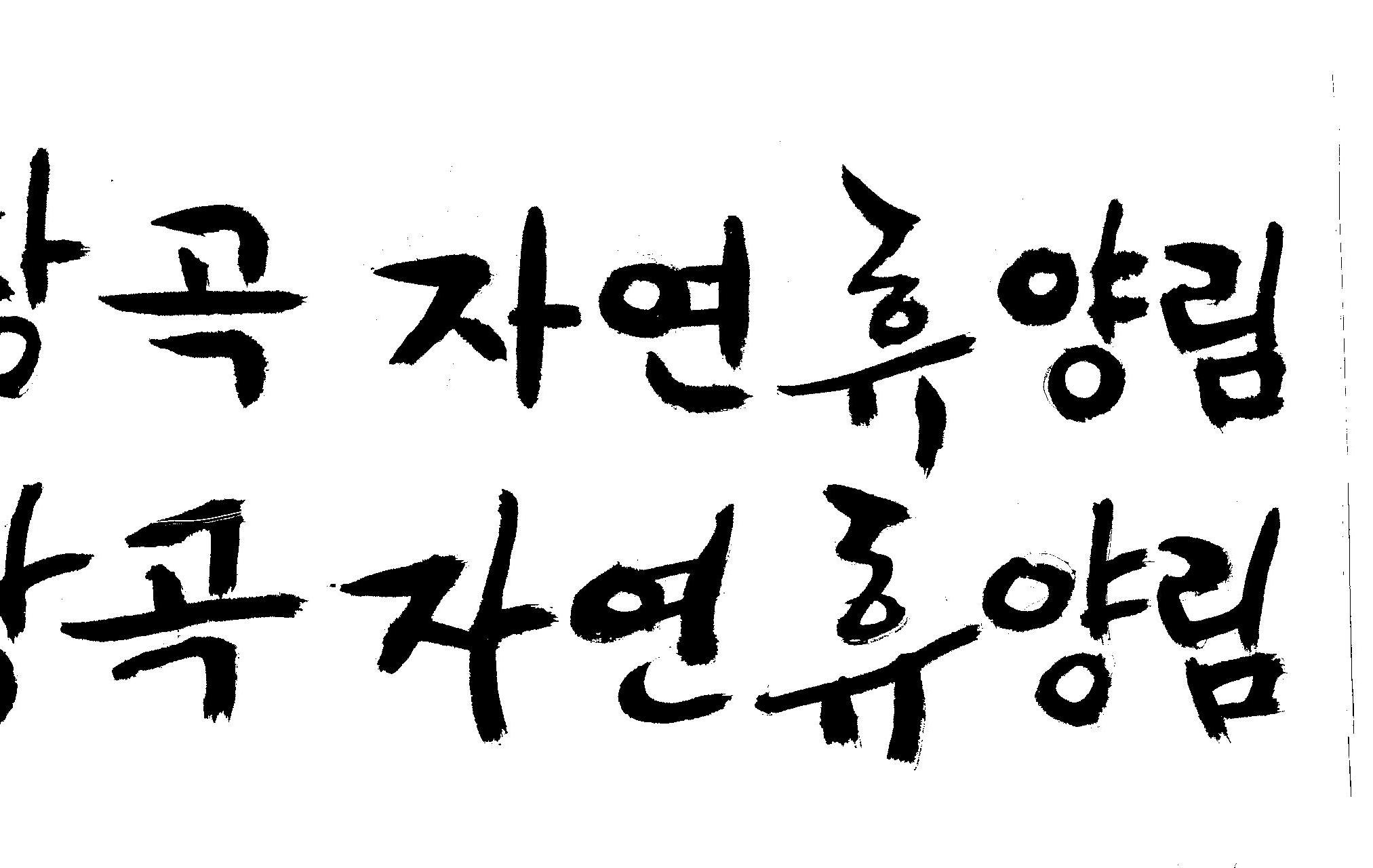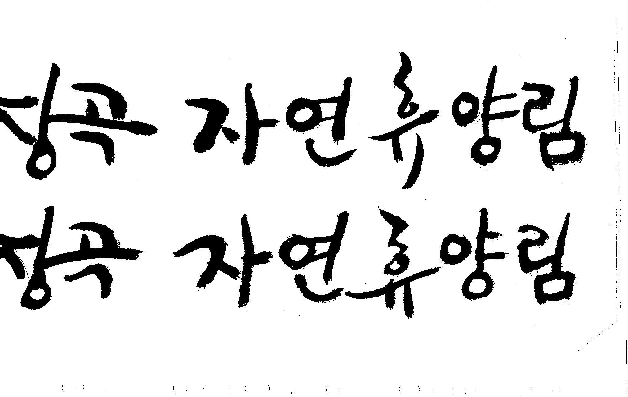 캘리 부탁드려요~ 김철호 일반 1 9997 2008.12.25 23:24 > > 홈페이지 시안 작업중인데. > 메인으로 들어가는 폰트를 명조체로 넣었는데 좀 딱딱한 느낌이 들어 > 캘리로 쓰면 느낌이 좋을것 같아서 부탁드리게 됐습니다. > [장곡 자연휴양림] 이구요. > 홈페이지 시안으로 채택되면 결과물 보여드릴께요^^ > 추운겨울 감기 조심하시고 > 즐거운 크리스마스 되세요! > 감사합니다.. 유용하게 쓰시길... 글자수가 많아서 스캔이 잘렸네요.. 헷갈려서 중복되게 올라간것이 있을것인데.. 맞춰서 편집하세요..
