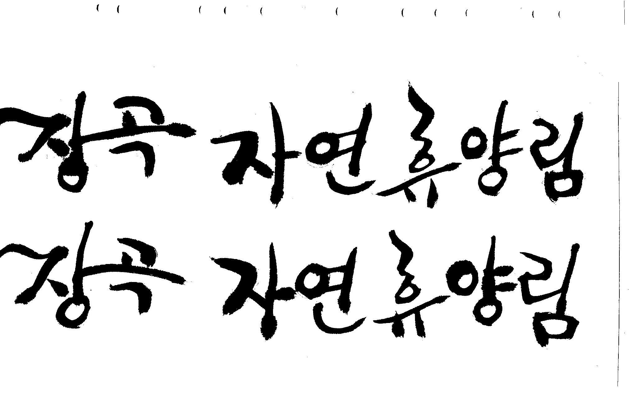 캘리 부탁드려요~ 김철호 일반 0 8649 2008.12.25 23:25 > > > > > 홈페이지 시안 작업중인데. > > 메인으로 들어가는 폰트를 명조체로 넣었는데 좀 딱딱한 느낌이 들어 > > 캘리로 쓰면 느낌이 좋을것 같아서 부탁드리게 됐습니다. > > [장곡 자연휴양림] 이구요. > > 홈페이지 시안으로 채택되면 결과물 보여드릴께요^^ > > 추운겨울 감기 조심하시고 > > 즐거운 크리스마스 되세요! > > > > 감사합니다.. > 유용하게 쓰시길... > 글자수가 많아서 스캔이 잘렸네요.. > 맞춰서 편집하세요.. >