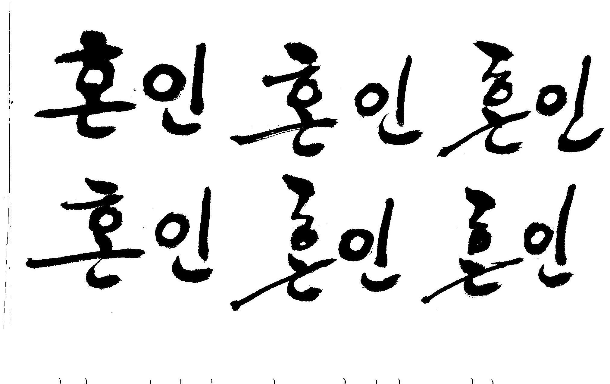 캘리부탁드려욤 .. >_< 김철호 일반 0 9976 2008.12.26 17:33 > > 안녕하세요 > 청첩장을 만들게 되었는데 > 고전적인 느낌으로 그림을 그렸거든요.. > 그런데 앞에 > > '혼인' 이라는 글씨를 한문으로 적어 넣고 싶은데.. > 한글이라두 괜찮아욤!!! ㅠㅠ > 캘리해보려고 시도는 해봤지만 너무 어려워서리..... ㅠㅠ > > [ 婚姻 ] <- (혼인할혼 , 혼인인 ) > > 캘리 부탁드릴수 있을까요?? > 도와주세요~ > 한글로 올립니다. 유용하게 쓰시길..
