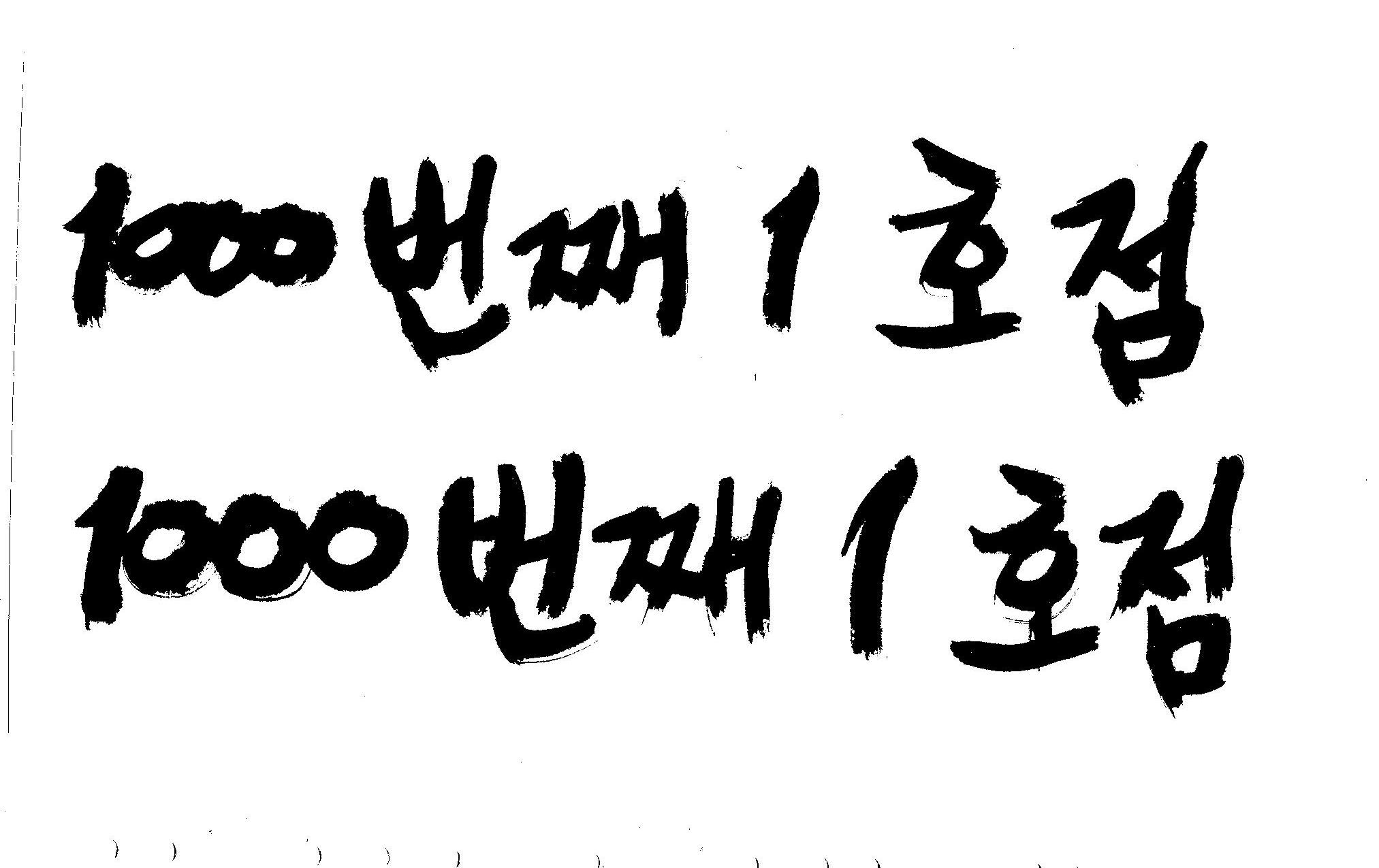 캘리하나 부탁드립니다(__) 김철호 일반 1 10152 2008.12.01 23:02 > > > > > 1000번째 1호점 > > > > 좀 강한 먹글씨로 부탁드리고자합니다...(__) > > > > 도와주셔요~ > > > > 늦어서 도움이 될런지... > 항상 캘리요청때는 > 언제까지라는 > 날짜와 함께 > 여유있게 하심..서로 좋죠 >
