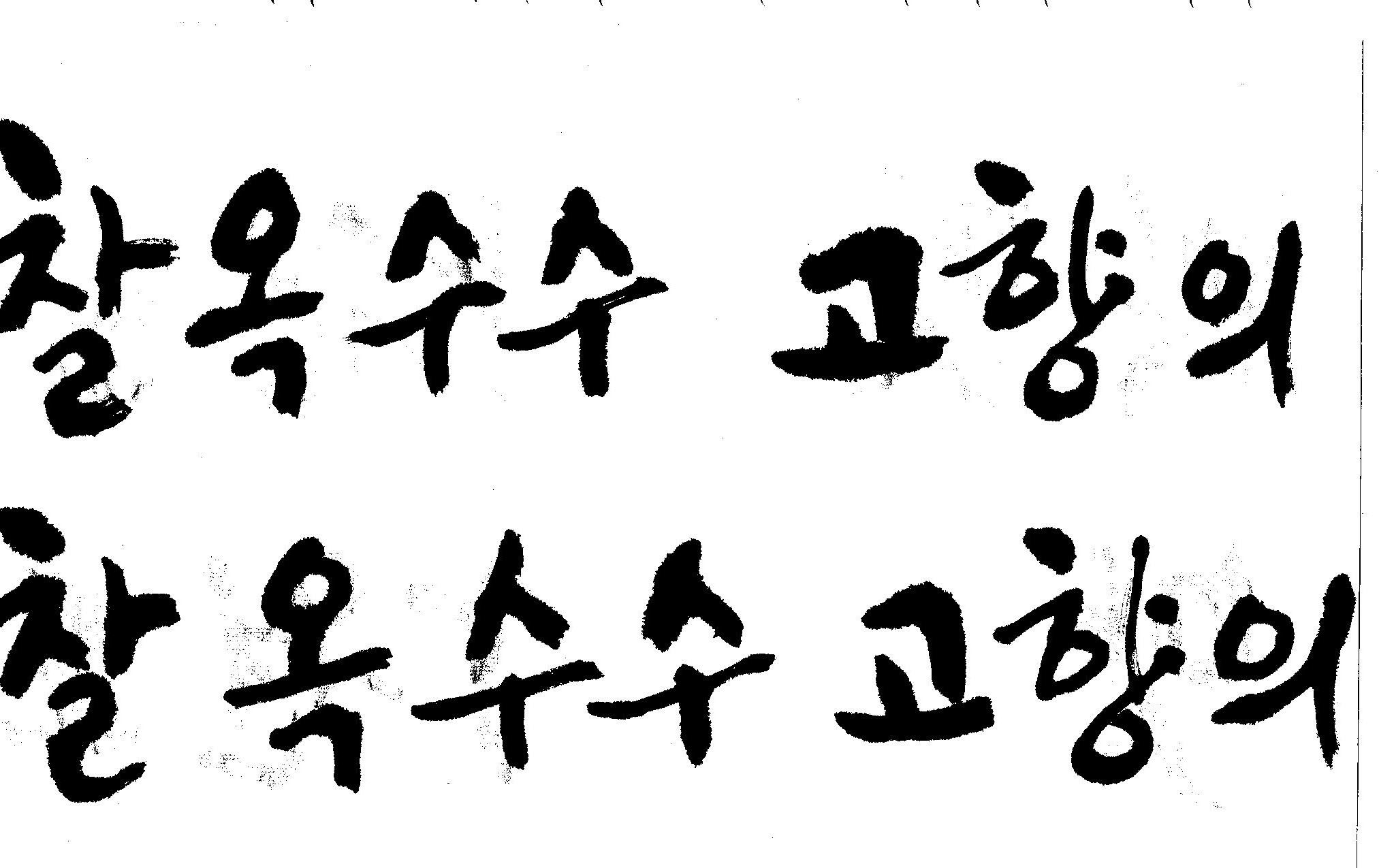 캘리고수님.. 캘리 부탁드립니다. 김철호 일반 1 11079 2008.10.31 15:44 > > 강원도 > 찰옥수수 > 고향의 맛 > > 이상의 문구 입니다. > 캘리 고수님들 시간되시면 도움 부탁드립니다.. > 유용하게 쓰시길 , 스캔이 깨끗하지 못해서 수고 좀 하셔야 겠네요.. "맛"이 라는 글자가 잘 않나와서 따로 올립니다.