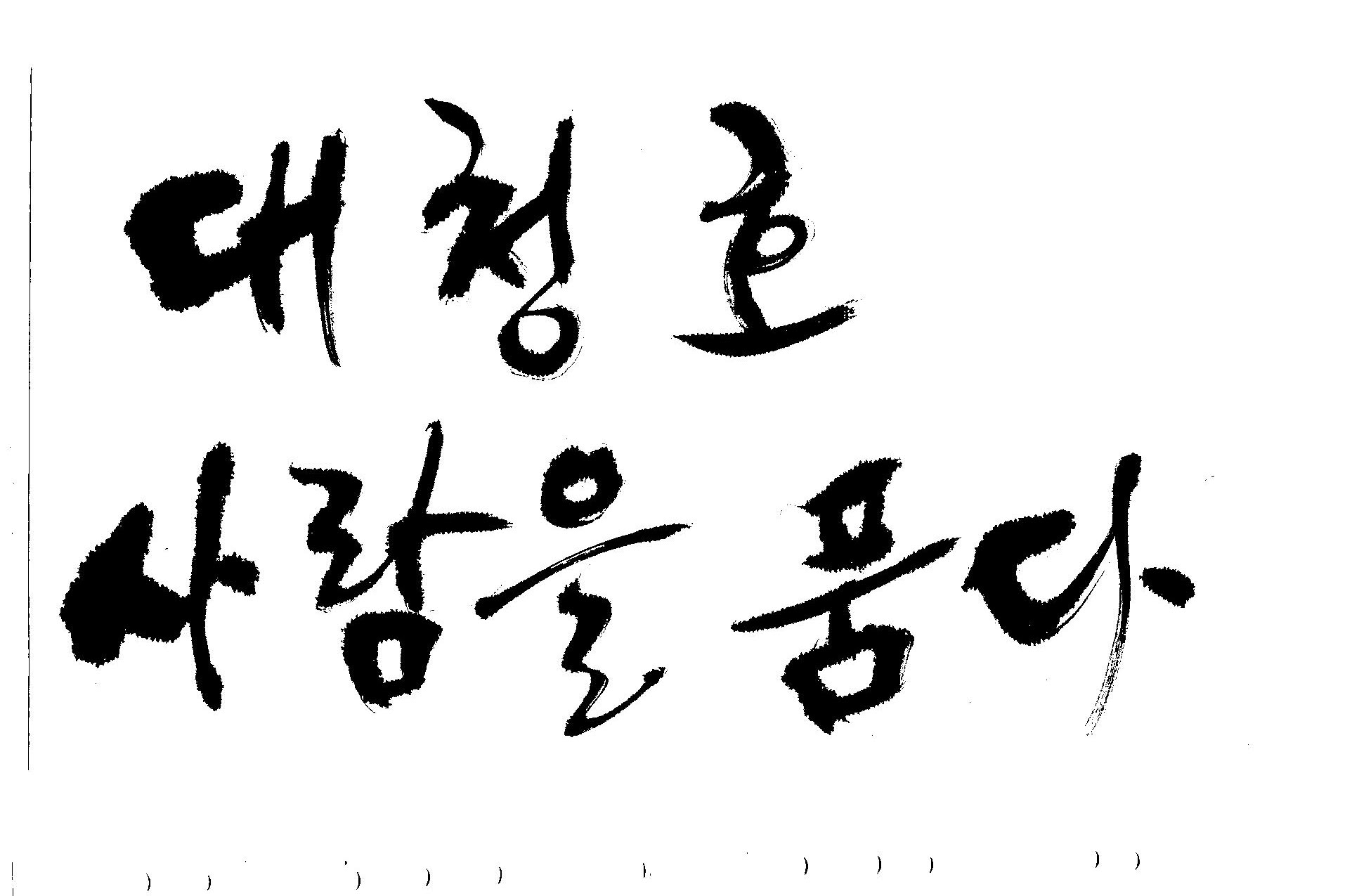 캘리 부탁드려요 김철호 일반 0 7167 2009.06.03 12:12 > > 대청호 > 사람을 품다 > > - 방송용 다큐멘터리에 들어갈겁니다 > 죄송합니다만 빨리 부탁드려요 > 두줄로 가운데 맞춤으로 써주세요 - > 줄맞춤은 알아서...
