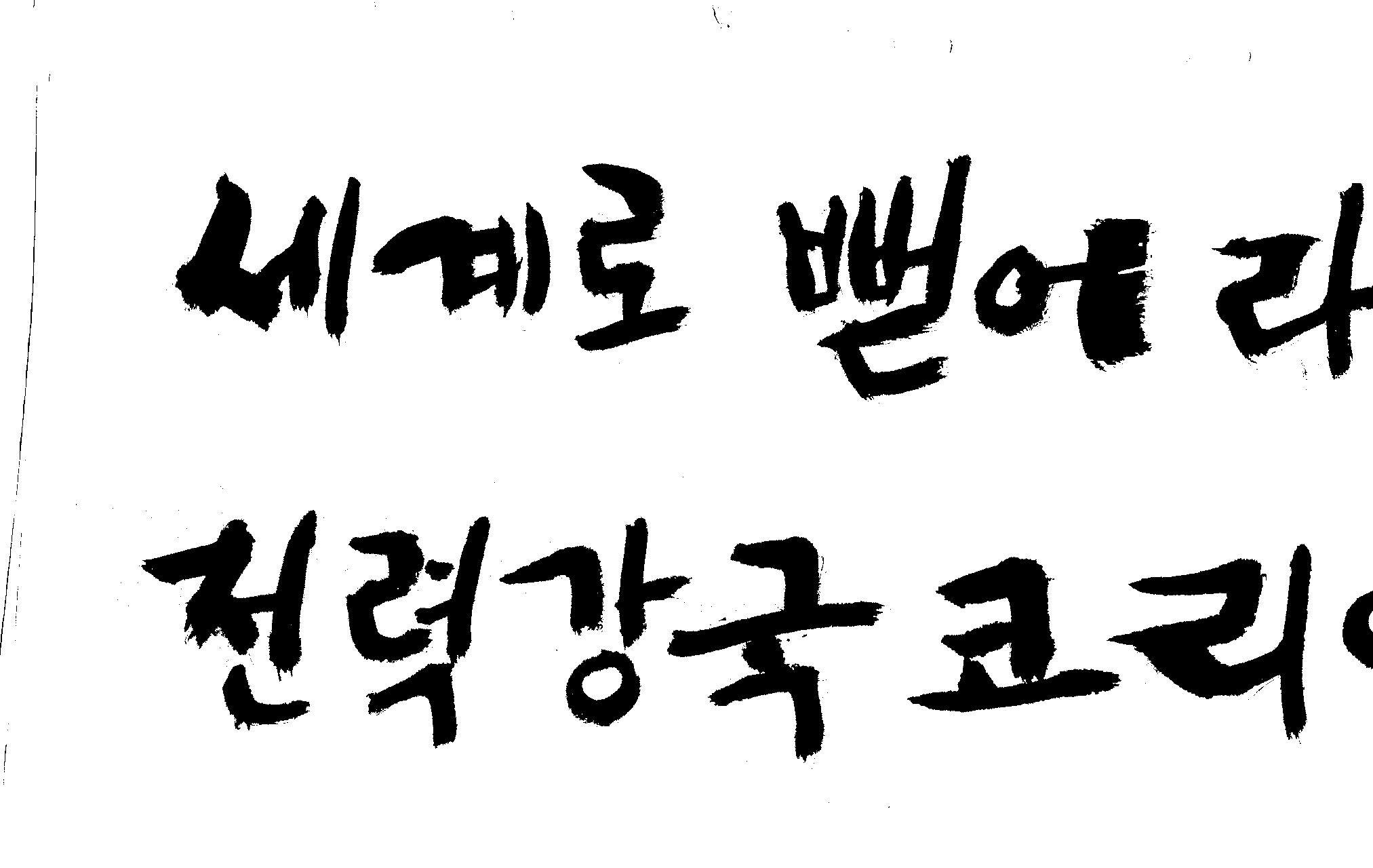 캘리 좀 부탁드려요!~ 김철호 일반 1 13154 2008.12.24 12:09 > > > > > > > > > 전력회사 신문광고를 하는데요 캘리로 멋지게 하고픈데 > > > 캘리프로그램으로 아무리 써도 느낌이 안나옵니다 ㅜ.ㅜ > > > 이런걸 부탁한다는 자체가 너무나도 염치없지만 부탁드립니다. > > > > > > 세계로 뻗어라! 전력강국 코리아 > > > > > 보기는 쉬워도 하기는 어려운게 > > 세상 모든 일 일겁니다. > > 그중에 캘리그라피가 그런 것일 겁니다... > > 스캔중에 글꼴이 잘린것은 서로다른글꼴서 편집하시길... > > 글수가 많아서 어쩔 수없네요... > > >