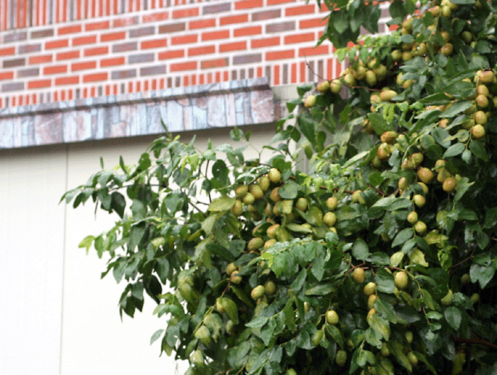 사무실 앞에 대추가지가 벽을 타고 넘어와서