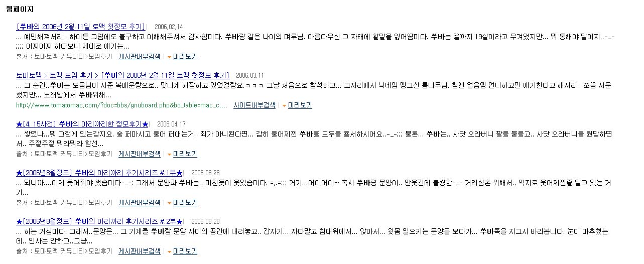 아하하하... 별게 다 나오네.....ㅋㅋㅋㅋ 예전에 올린것들까지 다 나오더만.ㅋ