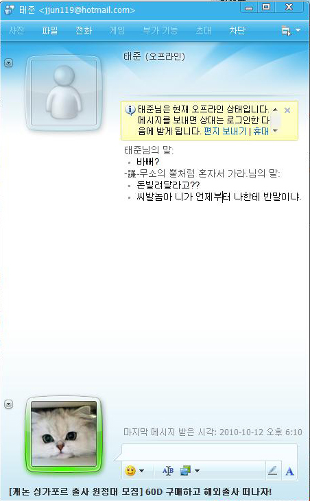 태추나 너 엠에센 해킹당햇는갑따~