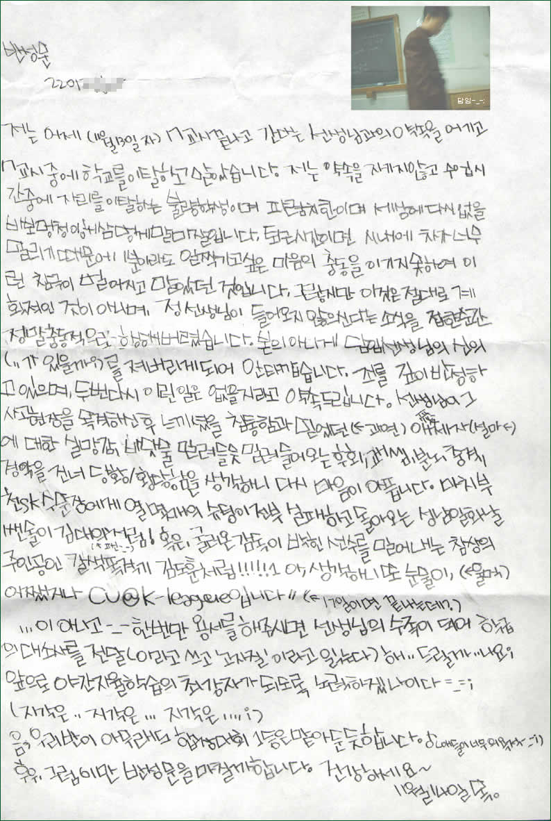 선생님이 글자부터 바로 세워야 할듯...,