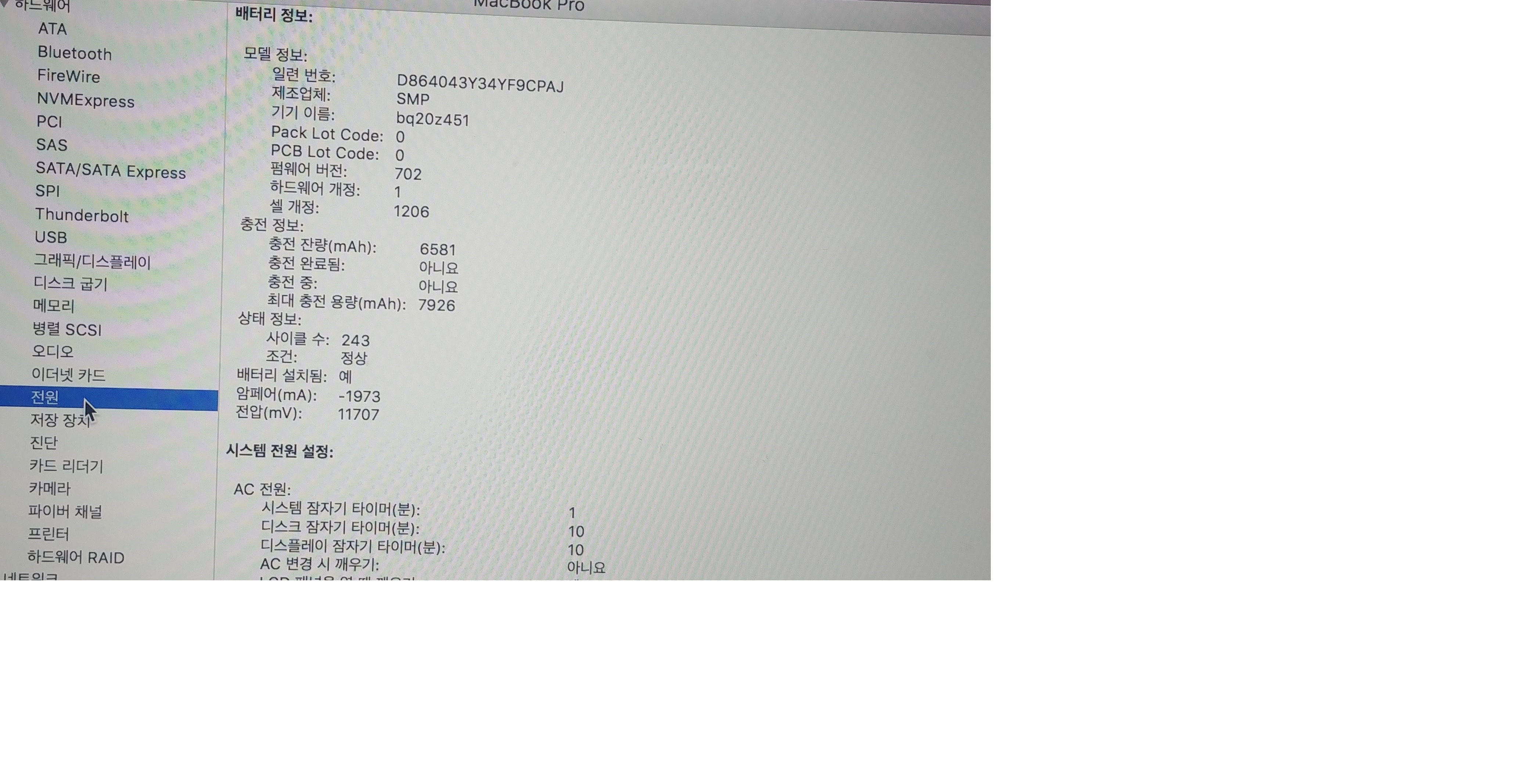 싸이클 243 최대충전용량 7926