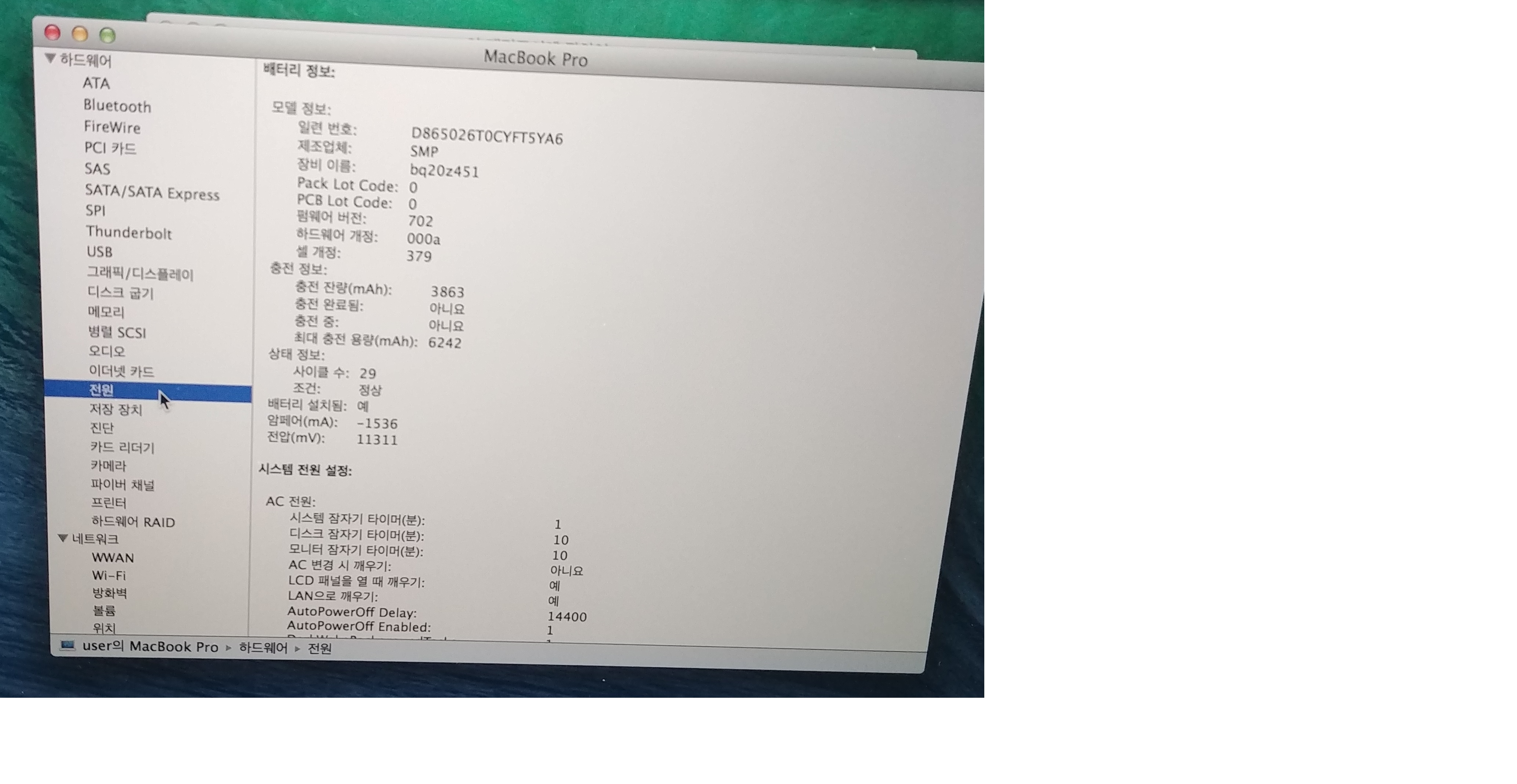 싸이클 29 최대충전용량 6242