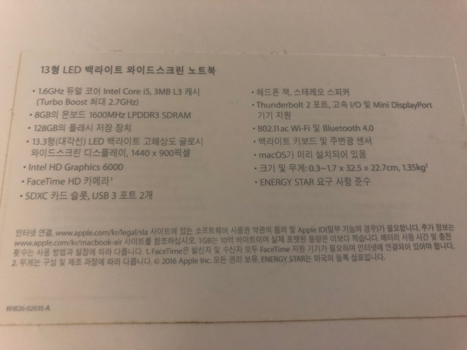 구입시기는 2017.02월이며 풀패키지 이고, 2016년형 13인치 모델입니다.