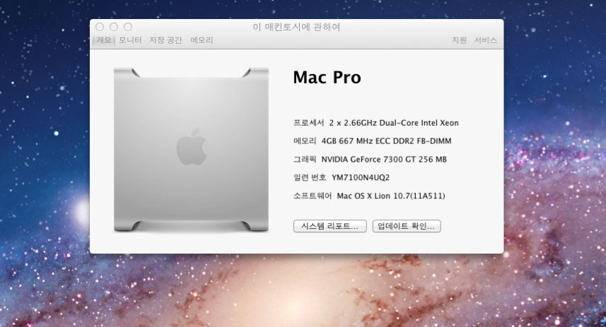 1. 맥프로 인텔제온 2.66Ghz xeon 2코어 x 2 (쿼드코어)