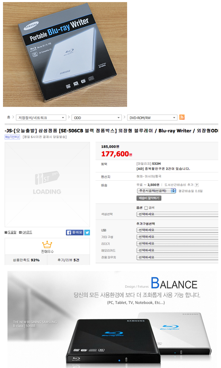 [판매완료] 블루레이SE-506CB(맥용 PC용 프로그램설치시디 드림)