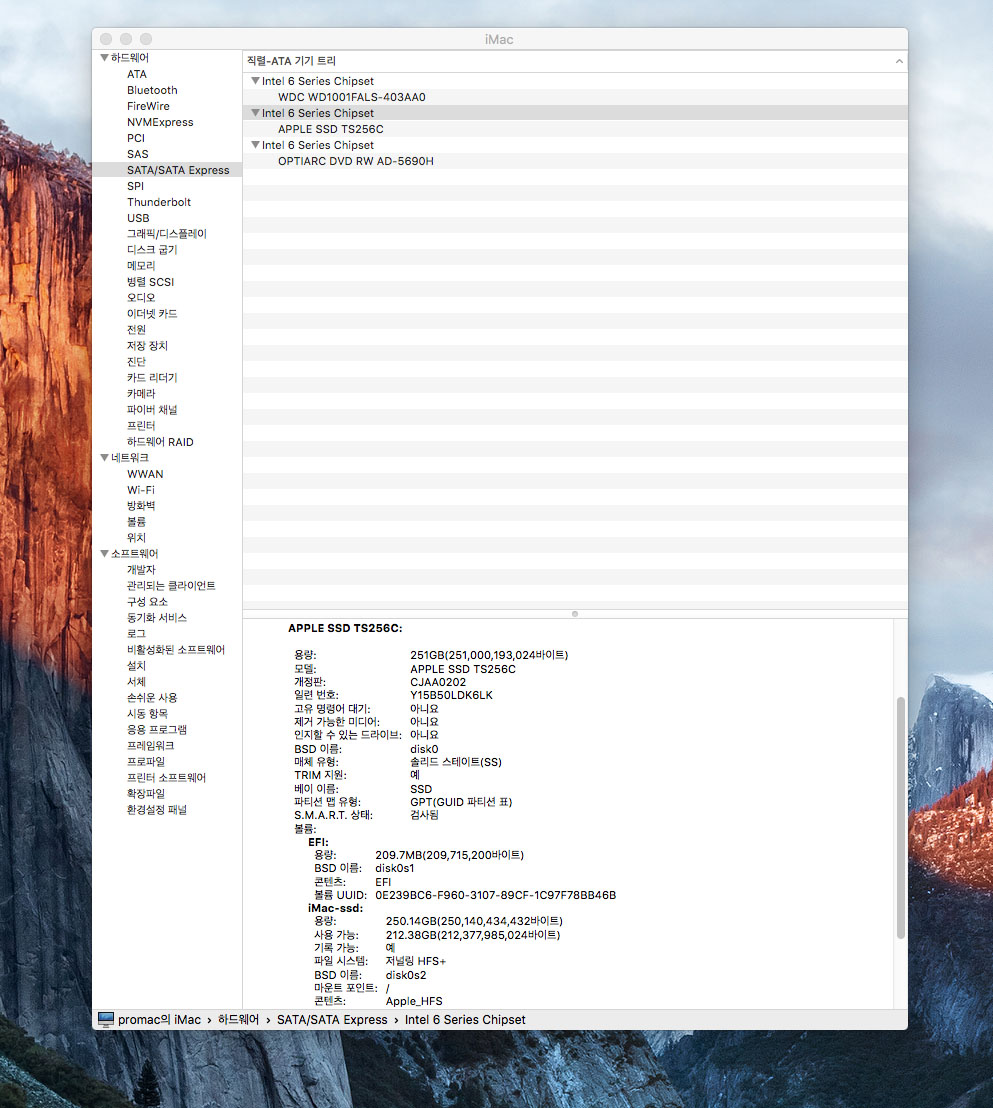 저장공간: 애플정품 SSD256 + 1TB HDD