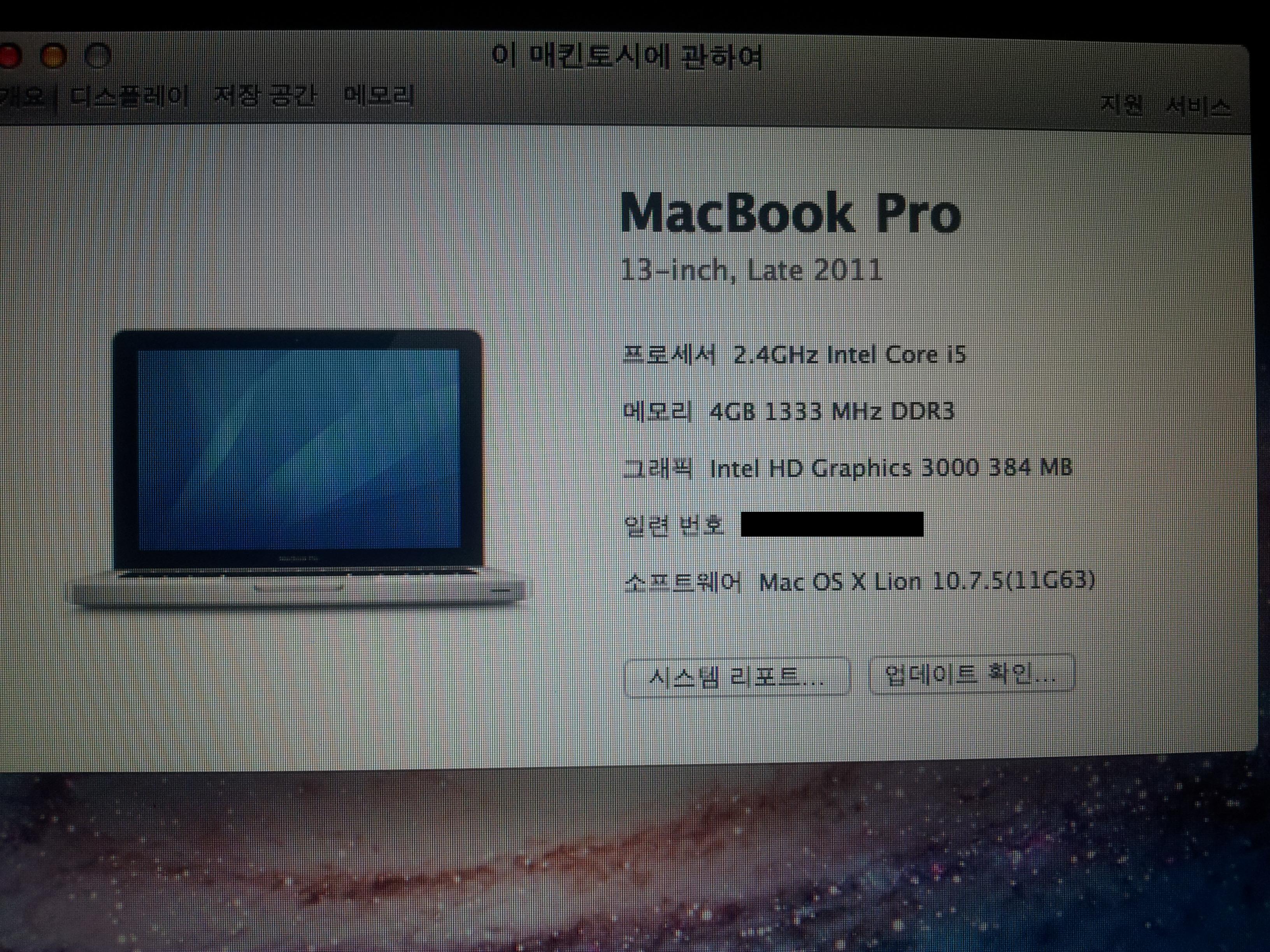 2011 late (MD313모델) 맥북 프로 13인치 입니다.