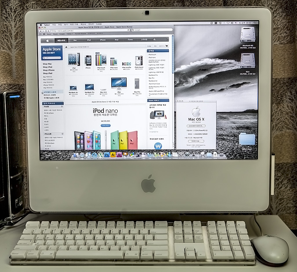 여러 가지 어플리케이션이 설치되어 있구요, 모든 에플리케이션들이 iMac G5에 설치 할수있는 최신버전입니다.