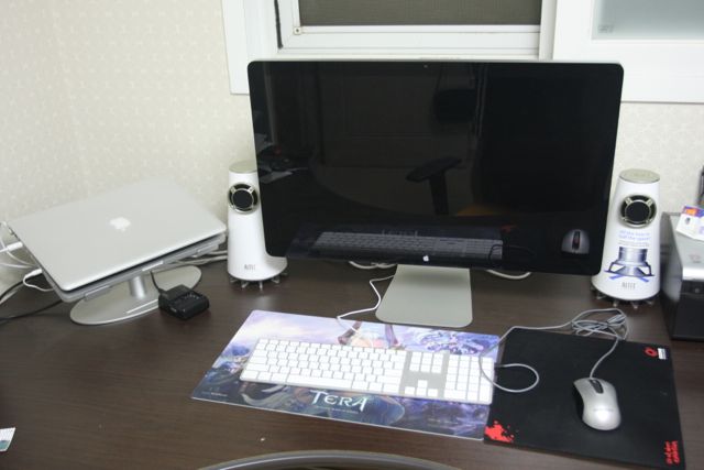 사진에서 보듯이 하드쉘 케이스 입혀서 진열해놓고 애플썬더볼트 디스플레이서 물려서