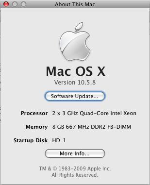 CPU: 3.0 GHz Quad-core Intel Xeon x 2