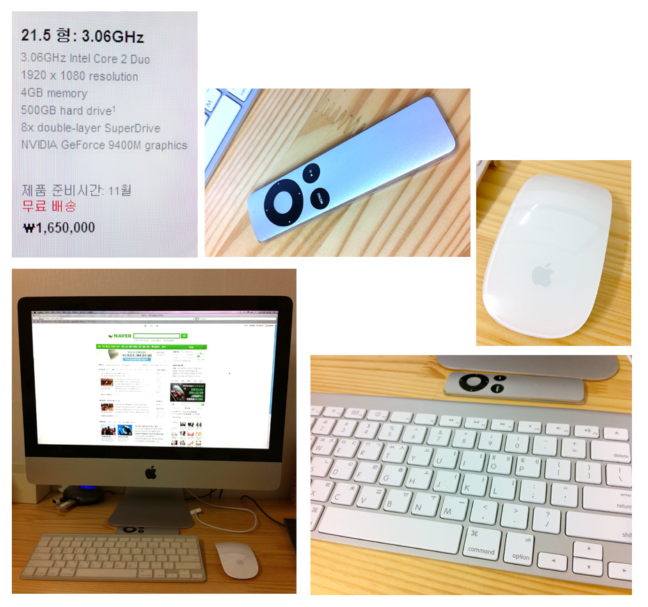 구성: 모니터본체, 매직마우스, 애플리모컨