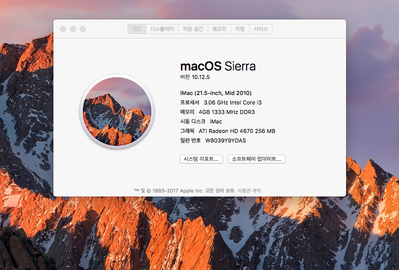 맥os 10.12 시에라 설치됨