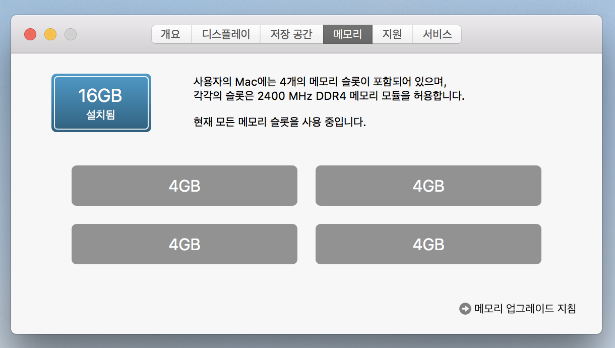 4gb 메모리 4개 장착하여 16g이고 250ssd 장착되어 있습니다.