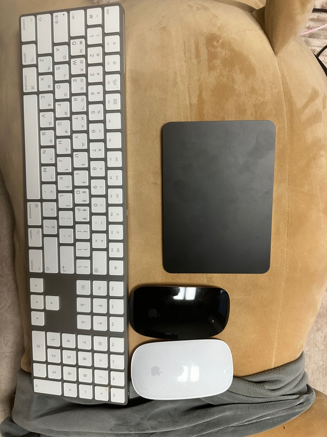 매직 키보드 화이트 마우스 블랙 흠집이랑 있어요 화이트마우스 블랙 터치패드 전부정품이고 박스도 다있습니다 이렇게 팝니다
