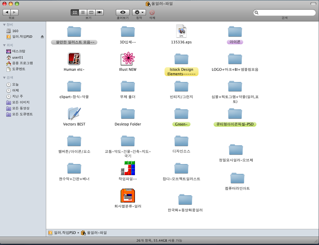 아이맥 사용으로 사용하지 않아 내놓습니다. 방대한 일러스트파일 100기가, 제가 작업한 파일, PSD등등