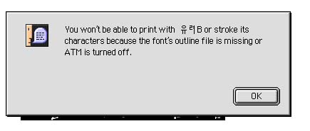 해당 서체는 트루타입서체가 아니고 화면용 서체 이기 때문에 아웃라인을 할수 없습니다라는 얘기 입니다.